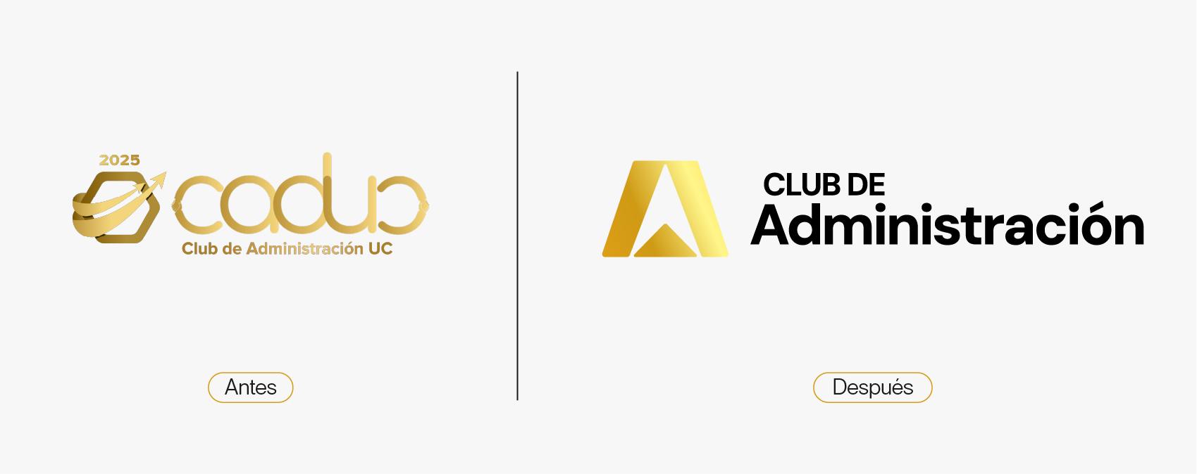 El Club de Administración de la Universidad Católica me contactó con la necesidad urgente de actualizar su identidad visual. El logo que venían utilizando no solo era poco funcional y sin versiones adaptativas, sino que además carecía de originalidad: se trataba de un ícono genérico extraído de internet, modificado únicamente por color.